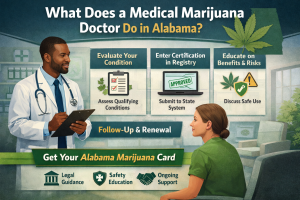 Not sure what a medical marijuana doctor does in Alabama? This guide explains the evaluation, certification, and registry steps—plus what to expect at your appointment when applying for an Alabama marijuana card.