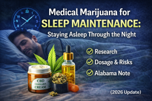 Sleep maintenance insomnia is waking up during the night and struggling to fall back asleep. This guide explains what research says about medical marijuana for staying asleep, what can backfire, and what to consider in Alabama.